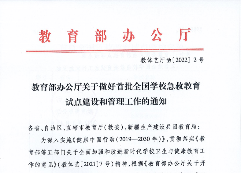 (通讯员彭茜)1月19日,永利官网被教育部认定为首批全国急救教育试点学校。此次经学校自主申报、省级教育行政部门审核推荐,教育部综合认定并公示,全国共有201所学校被确定为首批全国急救教育试点学校。据悉,该项工作为教育部实施青少年急救教育行动计划的第一步。10月8日,教育部办公厅为深入实施《健康中国行动(2019—2030年)》,贯彻落实《教育部等五部门关于全面加强和改进新时代学校卫生与健康教育工作的意见》(教体艺〔2021〕7号)精神,加强学校急救教育,保护青少年生命健康,为社会培养乐于施救、敢于施救、善于施救的人员,向全国发出了“开展全国学校急救教育试点工作”的通知。在学校设备处大力支持下,公司由304am永利集团牵头组织申报材料,成功获批首批全国急救教育试点学校。生命健康是人类社会文明进步的基础和前提。该项工作是以习近平新时代中国特色社会主义思想为指导,深入贯彻落实全国教育大会精神,牢固树立“健康第一”的教育理念,以提升员工健康素养为核心,以普及急救知识和技能为重点,以提高校园应急救护能力为目标的重要举措。此次获批是教育部对永利官网应急教育工作基础和能力的认可。获批后,304am永利集团将会同设备处、教务